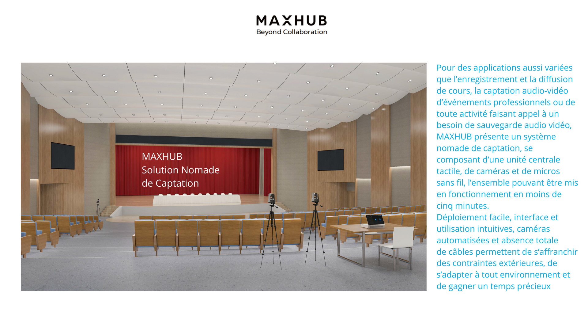 AVI85: Révolutionnez votre expérience de formation ! Notre catalogue SOLUTION NUMERIQUES regorge de technologies de pointe pour animer vos cours en présentiel comme à distance. Écrans interactifs, visioconférence ultra-performante, solutions d'affichage dynamique... Nous vous équipons pour un apprentissage immersif et efficace.